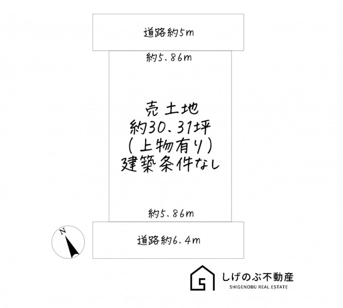 | 接道状況 | 南西側 公道6.4m 間口約5.8m 北東側 私道5m 間口約5.8m |