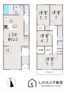 | 敷地面積 | 公簿 104.98㎡(31.75坪) | 建物面積 | 100.40㎡ (30.37坪) |