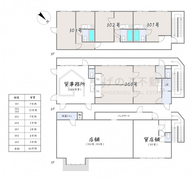 売主の契約不適合責任免責・現状有姿・公簿取引 102,103,201,203,303号室 賃貸中 現状オーナー自主管理 |