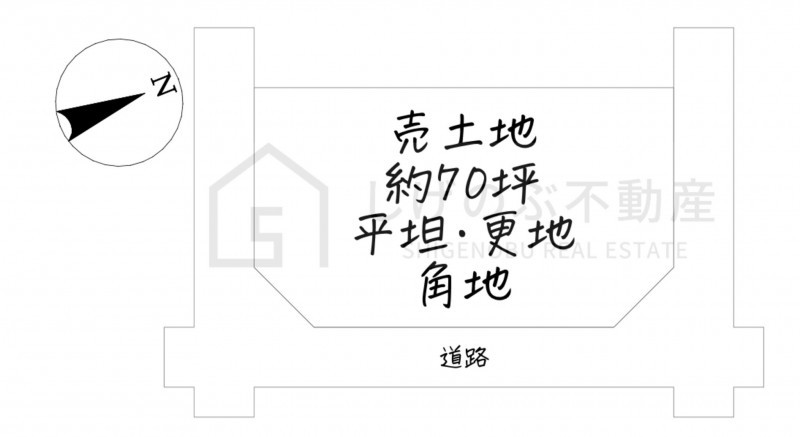| 接道状況 | 北東側 公道7m 間口約22.4m 南東側 公道7m 間口約11.6m 南西側 公道7m 間口約11.6m |