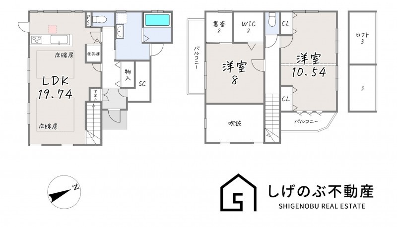 | 設備 | システムキッチン、カウンターキッチン、IHクッキングヒーター、食器洗浄乾燥機、浴室乾燥機、モニタ付インターホン、洗浄便座、ウォークインクローゼット、複層ガラス、ロフト、駐車場2台分、床下収納、トイレ2箇所、書斎、太陽光パネル、24時間換気システム、吹抜、庭 | ||